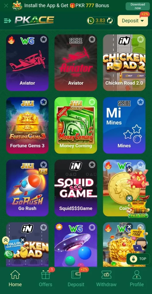PKACE Game allows users to participate in games where they can win real money rewards through simple gameplay systems. Players can start with small investments and gradually explore different earning opportunities available inside the application. The earning structure is easy to understand, making it suitable for beginners who are new to online earning apps. Many users appreciate the flexibility it provides in choosing how much they want to invest and play. It creates a balanced experience between risk and potential rewards for Pakistani players.
